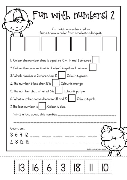 - 8 Fun with Numbers: number order, doubling, half, more than/less than/between, counting