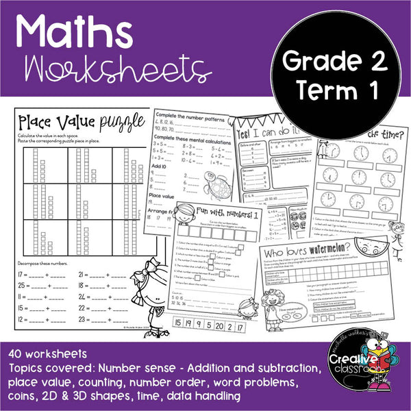 A selection of curriculum linked Maths worksheets for Term 1 of Grade 2.